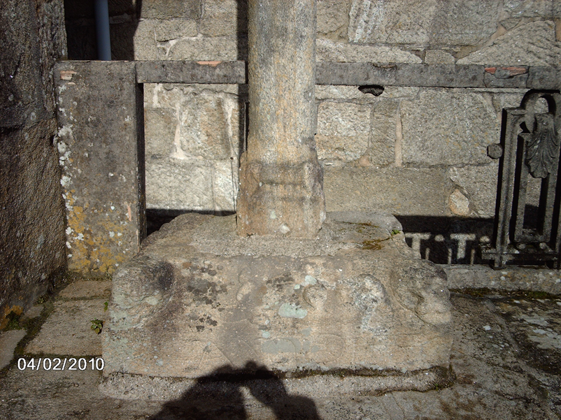 La fecha grabada en la basa (1556), no concuerda con la fundación de la capilla (1744), ni tampoco la visible diferencia de los tres elementos pétreos que componen el conjunto: basa, fuste y cruz. No sería descabellado pensar que este cruceiro fuera reconstruido con elementos de diferentes épocas y traídos de diferentes lugares, ni tampoco, que conocida la existencia del rollo en los aledaños de la capilla, al construirse ésta y ser lugar sagrado, se hubiera hecho desaparecer el rollo, que de seguro también se vendría utilizando como picota, cuya función era la de servir para la exposición a la vergüenza pública de los reos, para azotarlos, e incluso para mutilar o ejecutar a los sentenciados y mostrar allí sus miembros amputados o sus cadáveres. Abundaría en ello, el hecho de que la basa tenga grabadas las calaveras y las tibias, figuras habituales en las picotas.
