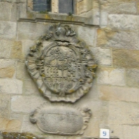 “O brasón conta de oito cuarteis máis un central, o primeiro (superior dereito) e o dos Maldonado ou Rúa, o segundo cinco follas de figueira, apelido Figueroa, o terceiro descoñecido, o cuarto son as armas dos Feijóo, o quinto o dos Romero. o sexto poderían ser os Bermudez, o do centro descoñecido”.