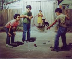 Miguel tiña oito anos coma min. Daquela non había cartos para xoguetes para familias como as nosas, mais o meu pai sabía facer virandellas de madeira coa súa navalla.