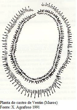 Ventín: Situado no medio dunha ladeira. De forma alongada, presenta un só recinto defendido por dous parapeitos paralelos.