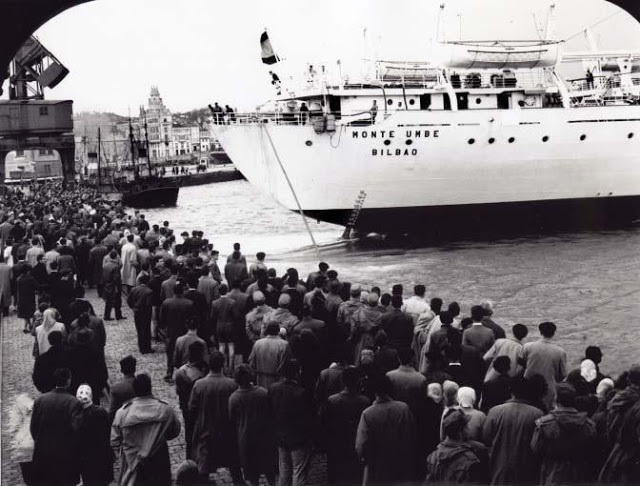 O certo é que un día de decembro do 1961 atopeime no porto de Vigo admirando un «enorme» trasatlántico con tal fascinación que máis que un buque me parecía unha catedral. Alí totalmente pasmado e rodeado de baúis que contiñan as nosas poucas pertenzas ademais dalgúns encargos para xente que xa vivía alá en Montevideo. Hoxe pode parecer estraño, pero recordo que nos baúis había un leghón ou sacho para un que tiña unha chacra nós arredores de Montevideo e unha maruca salgada que nos encargou unha nai para un fillo que xa había moitos anos que vivía na capital uruguaia e por razóns que aínda non entendo posiblemente a maruca salgada representaba o máximo en demostración de afecto maternal. Tamén había unha chea de familiares chorosos que non viñan a dicir ata a vista senón máis ben adeus pois naquel entón non se viaxaba con billete de retorno.