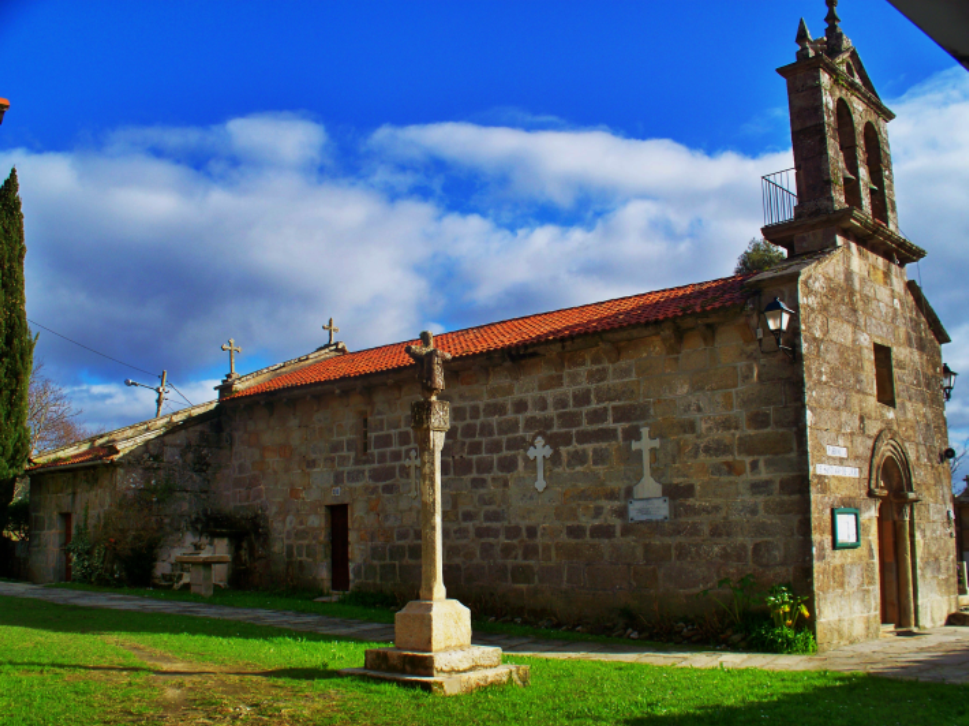 No ano 1307 xa existía a fegresía de Louro. A sacristía fíxose no ano 1633. A imaxe de Santiago Apóstolo a cabalo mercouse no ano 1703. A igrexa alargouse no ano 1720. A porta lateral abriuse no ano 1732. A imaxe do Nazareno e do ano 1753. O retablo do altar maior do ano 1770. A pila bautismal de granito do ano 1801. O traslado das imaxes da Magdalena e de San Roque dende a capela de Louro, fixose no ano 1853. A espadaña e do ano 1860. A imaxe da Dolorosa e do ano 1861. O cemiterio abreuse no ano 1879 ( antes soterrabase no interior da igrexa).