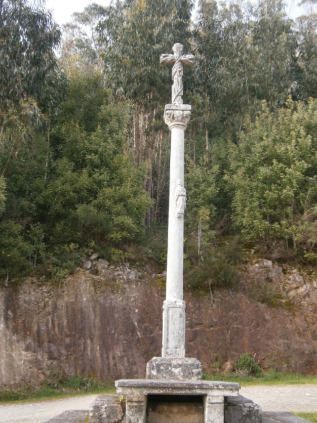 monte próximo a la Casa Rectoral, hay un Crucero que debió ser muy hermoso a juzgar por los restos que de él se conservan. Su columna es cilíndrica faltándole el capitel y la cruz. En la parte media del fuste hay la imagen de una Virgen sobre una labrada mensulita; la esculturita es muy bella y está tallada en el mismo bloque que el fuste, es decir, son ambos de una pieza. La basa es cuadricular con medallones salientes en sus cuatro lados, todos ellos sobre tres filas de escaleras de cuatro lados; alrededor de la última tiene una inscripción que se lee en parte y dice: la que deshechos los enlaces y abreviaturas parece decir: .