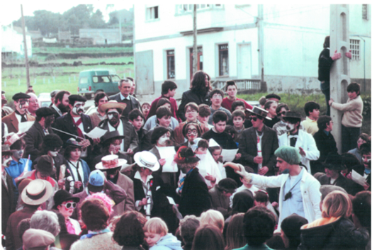 Na escola aprendeu o baile galego . E tamén se iniciou nun dos seus grandes praceres: tocar a pandeireta. Acórdome que a primeira que tivera rompeuna durante unha protesta estudiantil no instituto. E entre todos os compañeiros fixemos un escote para mercarlle outra a que lle poría de nome “manuela” e que levaría consigo a todas as festas dende aquela.