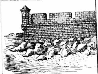 del siglo XVIII, construido sobre peñascos y rodeado de mar, menos por su unión a la tierra, que correspondía a la entrada del mismo y que hoy se conserva como entrada para la Cárcel pública. De todo esto sólo queda una pequeña parte, debido a la construcción de la Lonja Municipal que derribó el frente Norte que aparece en la foto.