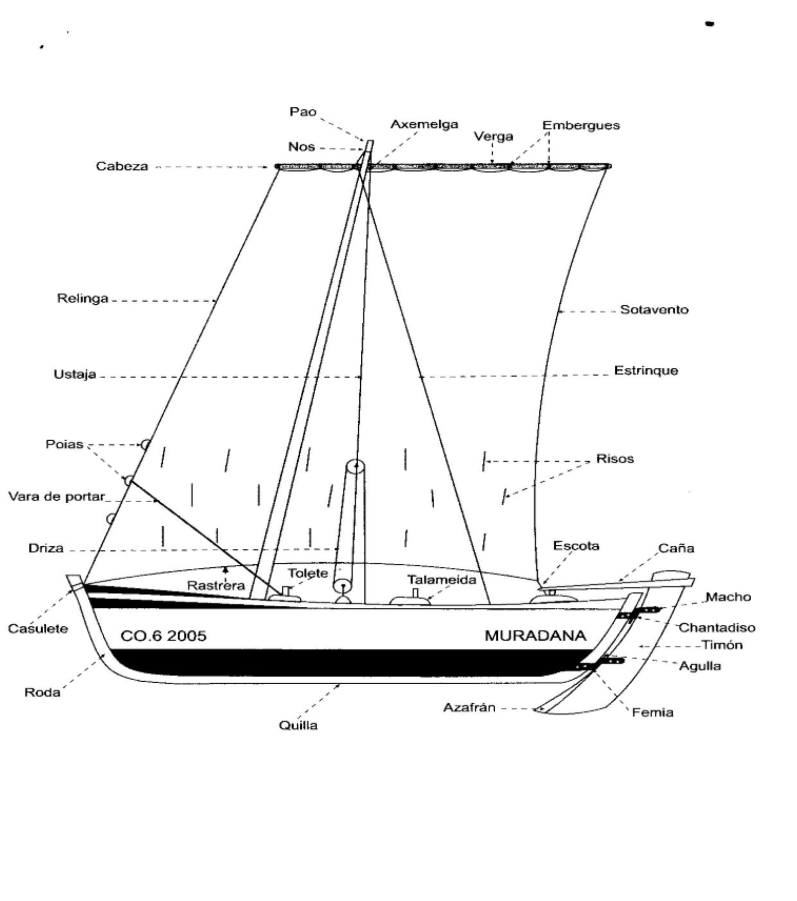 E con moita razon denominouse ( Canoa Muradana. ) ¿Por que, se denominaba así en Muros.¿ Por que a pesares de que en toda a ría había canoas, as de Muros diferenciabanse, pola sua distribución interna. Como dixen antes, específicamente para a pesca de cordel.