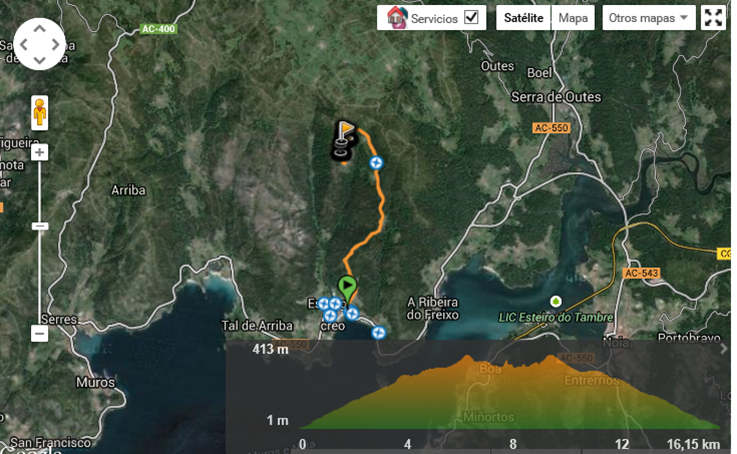 dificultan o paso. Subimos en coche, para alixeirar, dende Esteiro, pola estrada de o Maio, pasando por Lestelle, A Penseira, Catadoiro e Arestiño. Chegamos ata a subestación de Gamesa e collemos a estrada cara Á Laxe. Na primeira curva moi pechada a dereita deixamos o coche e camiñamos uns 100 metros ata que, a esquerdas comeza un camiño da pé moi estreitiño e case imperceptible. Coidado non pasarse de longo. A uns 300 metros encontrámonos coa primeira atalaia e entrada natural que algúns moradores adaptaron (ver foto do calzo). Seguimos outros tantos metros e encontrámonos a segunda atalaia. Aos seus pés unha impresionante cova granítica natural (podemos chegar a estar de pé dentro dela) onde vemos restos de lume e probablemente tellas seculares. Seguimos e a maleza vólvese seriamente impertinente (15 ou 20 metros), ascendemos lixeiramente deixando atrás impresionantes loureiros e xa estamos no cumio. A primeira arritmia sucede ao ver, de pronto
