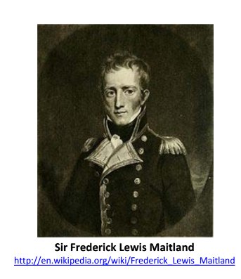 O capitán Frederick Lewis Maitland, que coñecera a bahía de Muros cando servía como tenente no HMS Kingfisher, unha balandra de 18 canóns, tamén estaba progresando nunha guerra que lle gardaba unha sorpresa final. Quen lle ía dicir, alí, na cuberta dun barco de tamaño medio e planeando o apresamento dunha pequena embarcación francesa na costa galega, que o invencible Napoleón Bonaparte, despois da derrota en Waterloo, se rendiría a el e que o levaría a Inglaterra cautivo no HMS Belerofonte, un buque de terceira clase con 74 canóns que o almirantazgo inglés porá nas súas mans.