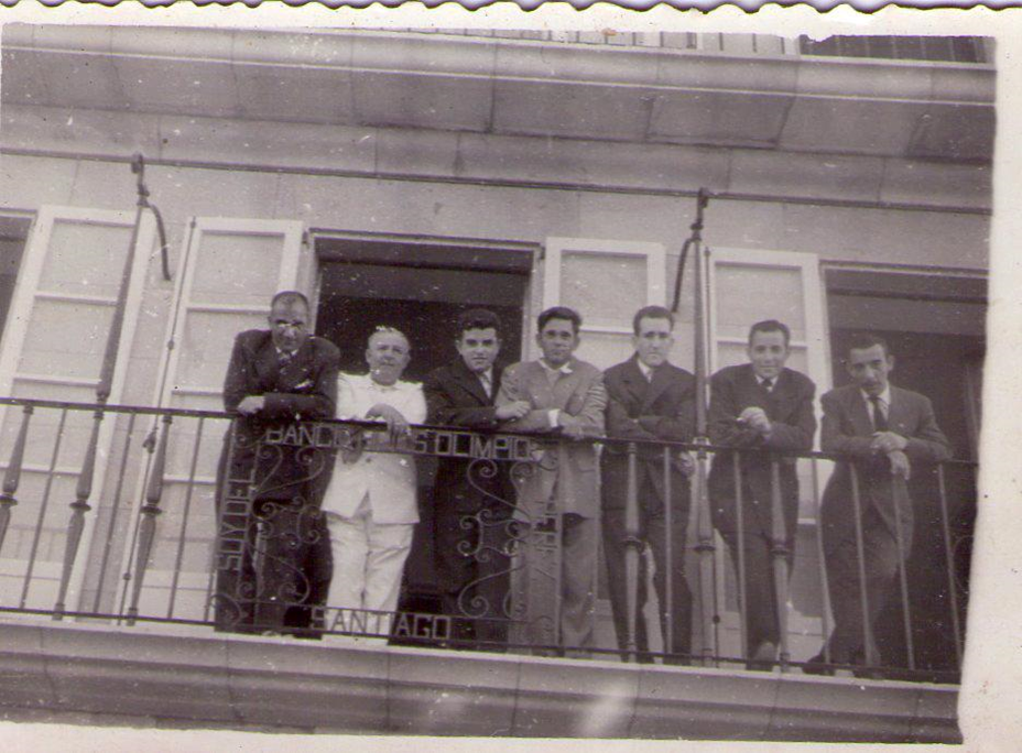 elementos ornamentais que dignificaron o conxunto, aportando ás balconadas da fachada principal unha cerraxería artística con referencias decorativas ao Banco Olimpio Pérez.. A foto coas persoas no balcón correspondese ao día da inauguración da sucursal bancaria. Ao ampliar a foto podese ver mellor o texto escrito no que o artesán ferreiro escribeu: SOY DEL BANCO HIJOS OLIMPIO PEREZ—SANTIAGO.