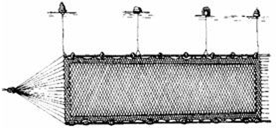 (ou cabo) e a todo o seu largo repartíanse os chumbos de uns 5 ou 6 centímetros de diámetro, separados entre si, como uns 15 ou 20 centímetros. Estes corchos teñen a función de aguantar a rede vertical para que a malla se aguante aberta, facilitando a introdución da cabeza da sardiña, para que sen deixala pasar de todo quede enganchada polas jaladas. (ou agallas).