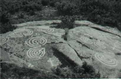 As formas predominantes son os laberintos, mais tamen hai signos cruciformes,círculos concéntricos
