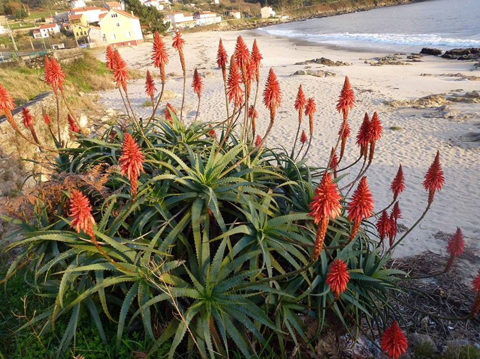 ¿E sabedes qué? Pois que o zume das súas grosas follas é moi bó para evitar-las ampollas das queimaduras nas que, ainda por riba, combate moi ben a infección bacteriana. E aínda máis, velaiquí vos copio o que pon a Wikipedia esa: “Algunos estudios preliminares indican que esta especie pudiera ser beneficiosa en el tratamiento del cáncer ya que contiene compuestos que inhiben la proliferación celular. Los resultados de un ensayo clínico en el que se trató a 240 pacientes con A. arborescens mostraron que el aloe mejora los efectos de la quimioterapia incrementando su eficacia tanto en tasas de reducción del tumor como en tiempo de supervivencia.”